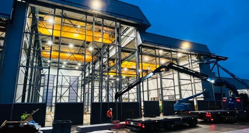 Nadat de nieuwe scheepsbouwhal voor Holland Shipyards Group vorig jaar is opgeleverd, worden nu de enorme overheaddeuren nog bekleed! Gaaf gezicht!