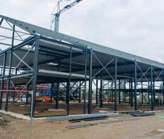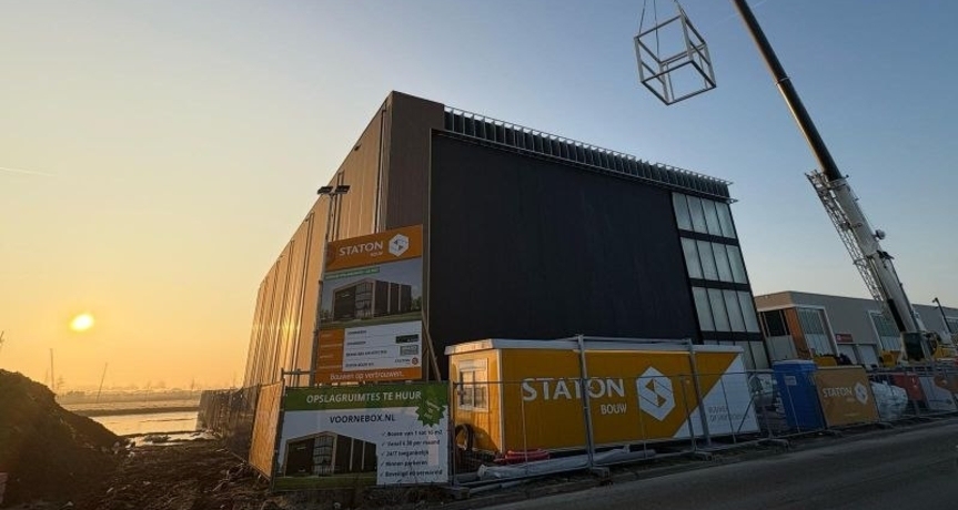 Prachtige bouwfoto van project VoorneBox op Bedrijvenpark Kickersbloem 3 in aanbouw! Hier realiseert Staton Bouw een hoogwaardig bedrijfsgebouw met storage units.