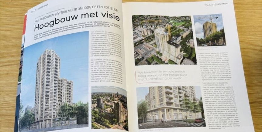Het artikel bestaat uit interviews, foto’s en een inkijkje in de bouw van de imposante woontoren 70LUX.