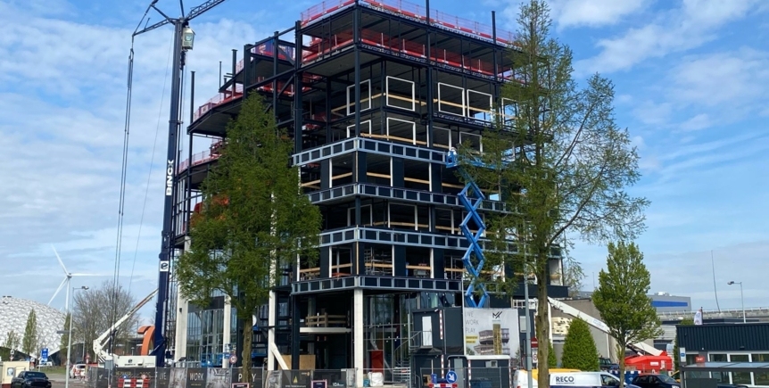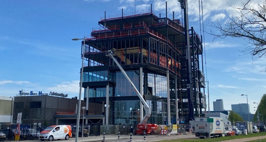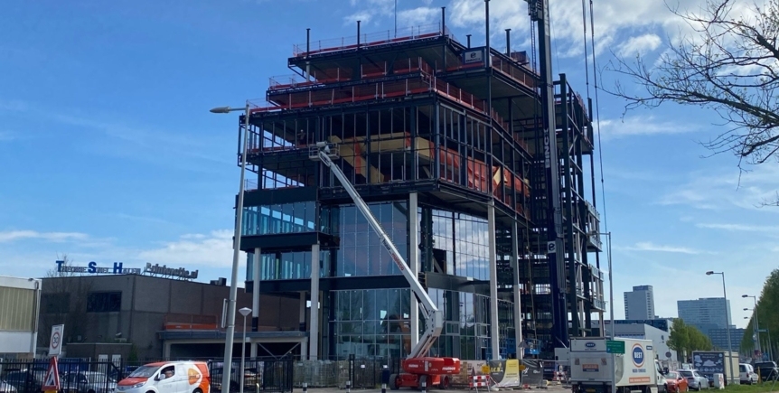 Hard op weg naar het hoogste punt bij 40 meter hoog BREEAM-NL project in Amsterdam!