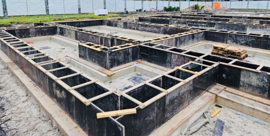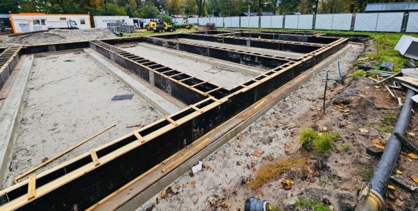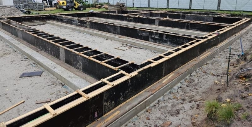 Het bouwkavel is midden tussen de bossen op een prachtige (vakantiepark)locatie gesitueerd. Inmiddels staat de fundering klaar om gestort te worden!
