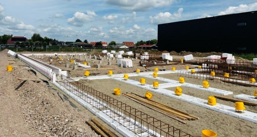 Volgas in Veen. Hier maakt ons eigen team de fundering voor het bedrijfspand van Henk Maas Weegschalen B.V.