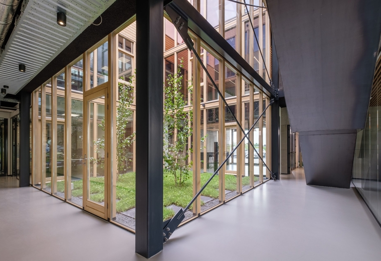 De bedrijfsruimte bestaat uit kantoren, expeditie, opslag en een moderne werkplaats. Ook is de nieuwbouw voorzien van een binnentuin met een inpandig dakterras. De expeditie- en werkplaats ruimten zijn bovendien voorzien van bovenloopkranen en een inpandig laaddock.