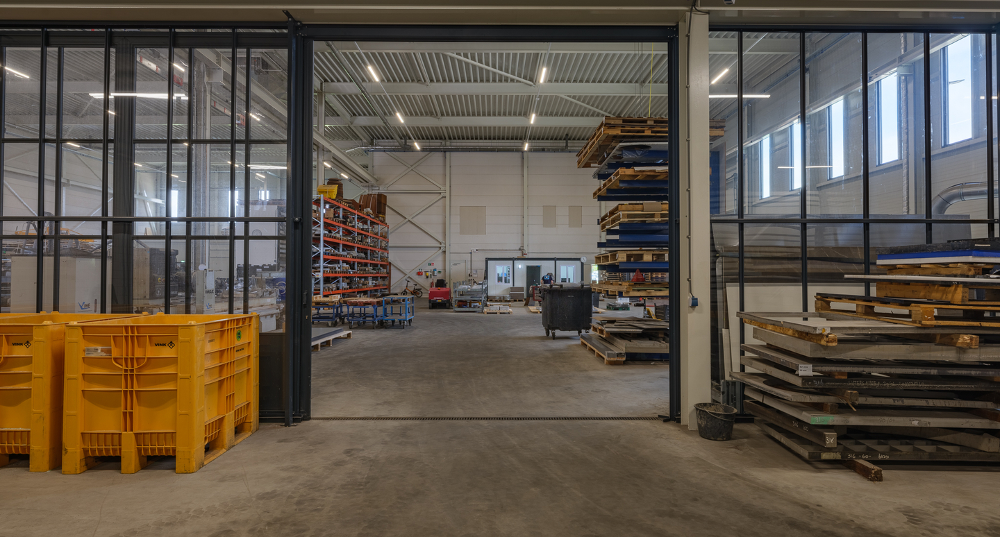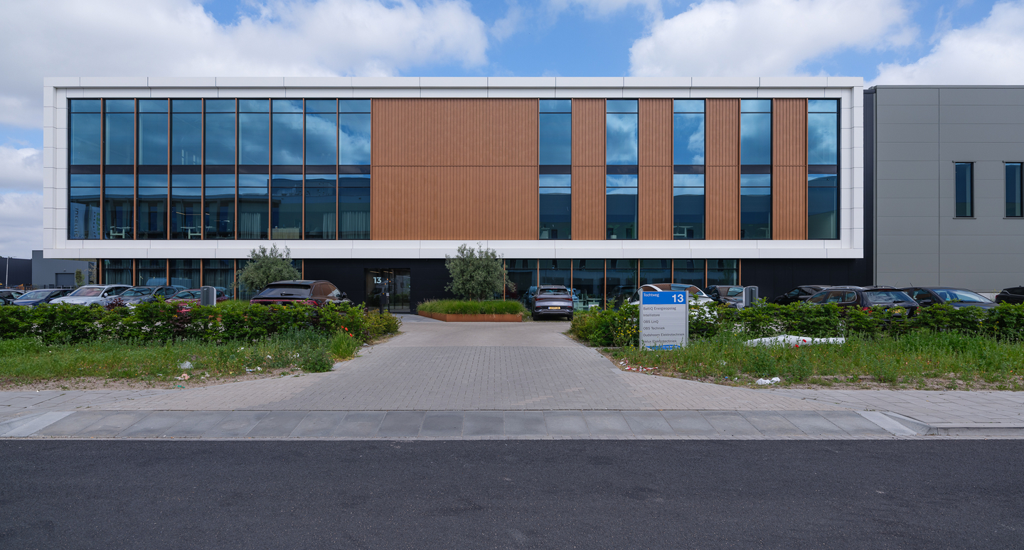 Dit pand is speciaal ontworpen om een deel van de OBS Groep in 2024 te huisvesten. 247 Watersnijden aan de linkerzijde van het pand en OW Machinebouw, OBS Techniek, Artomations en Intellistore aan de rechterzijde.