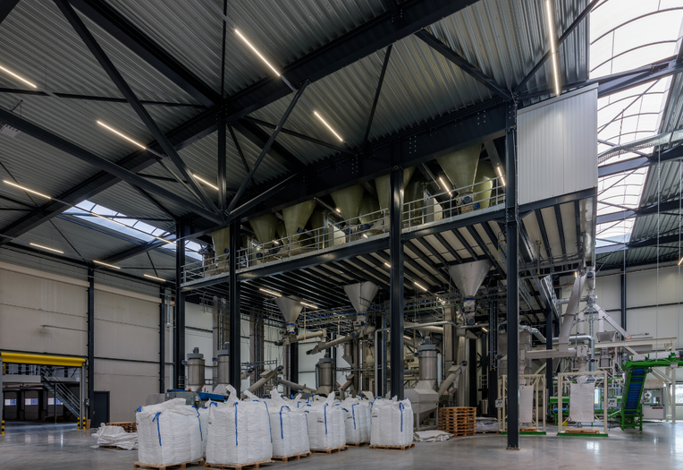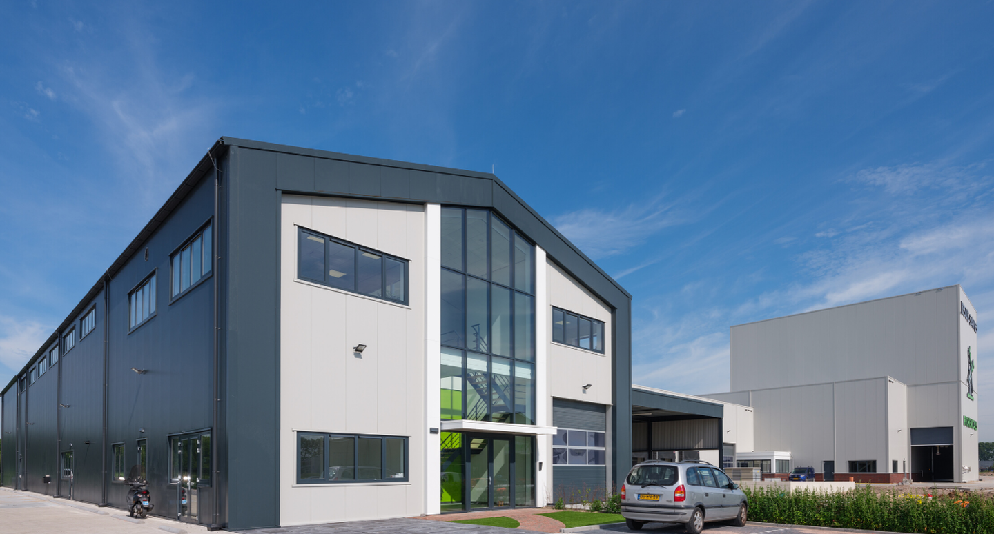 De nieuwe fabriek, met het bijbehorende kantoor, bestaat uit een productieruimte, laboratorium, logistieke hallen en een hal t.b.v. de silo’s. Het kantoor is conform eis van de gemeente voorzien van een schuin dak. Het logo, een molen met twee F’s in de wieken, prijkt prominent op de voorgevel van de toren.