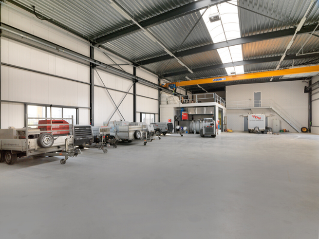Het gebouw bestaat uit een werkplaats met een kraanbaan en heeft een bruto vloeroppervalkte van 1000 m2.