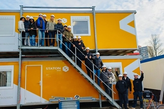 Halverwege de toren en inmiddels al een mooi uitzicht over de skyline van Gemeente Amsterdam! We gaan nu door naar 40meter hoogte!