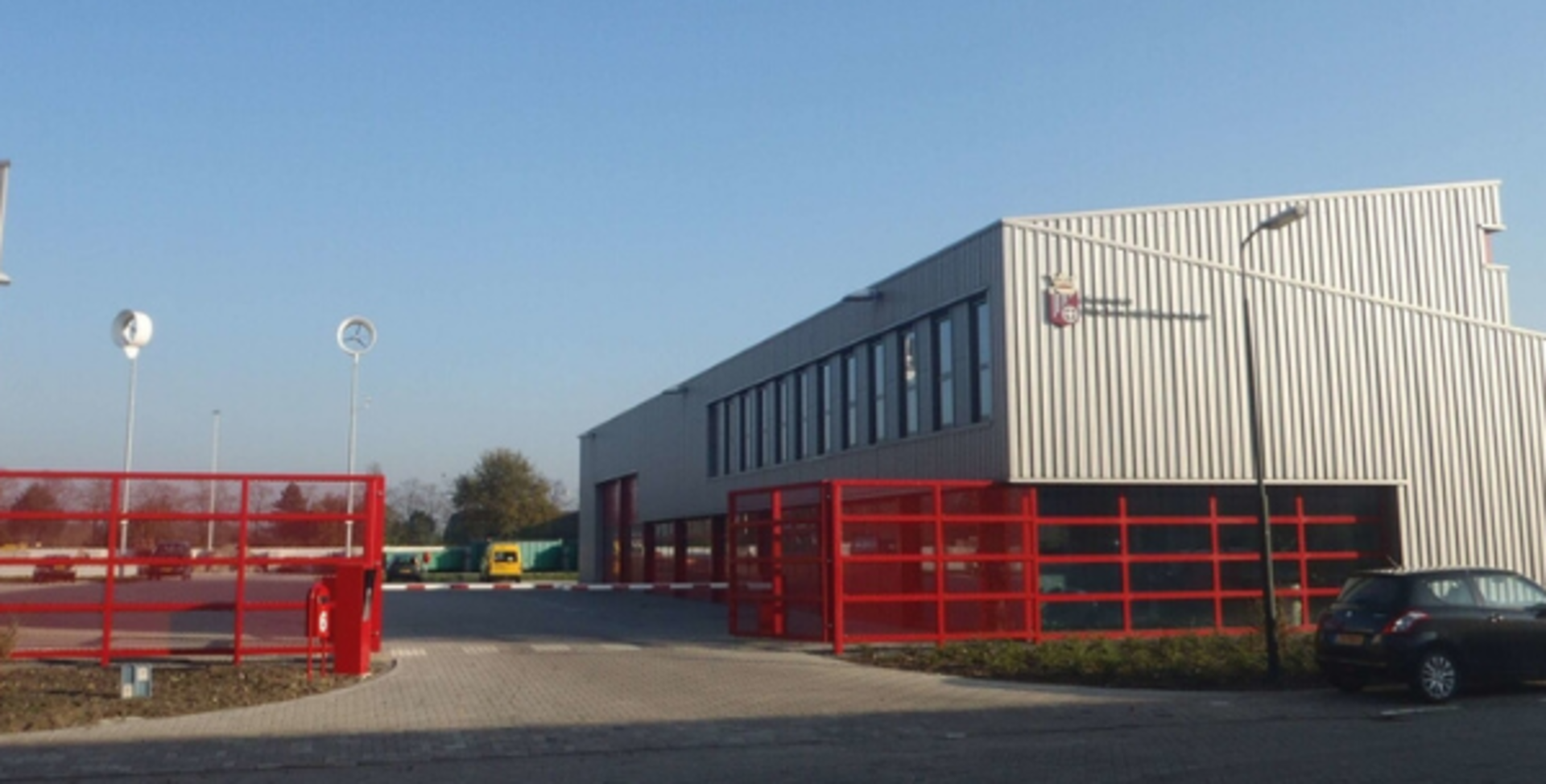 De kenmerkende rode poort is een verwijzing naar het rode logo van de gemeente Hardinxveld Giessendam. Het gebouw met een groot buitenterrein is een schitterend visitekaartje voor de gemeente.