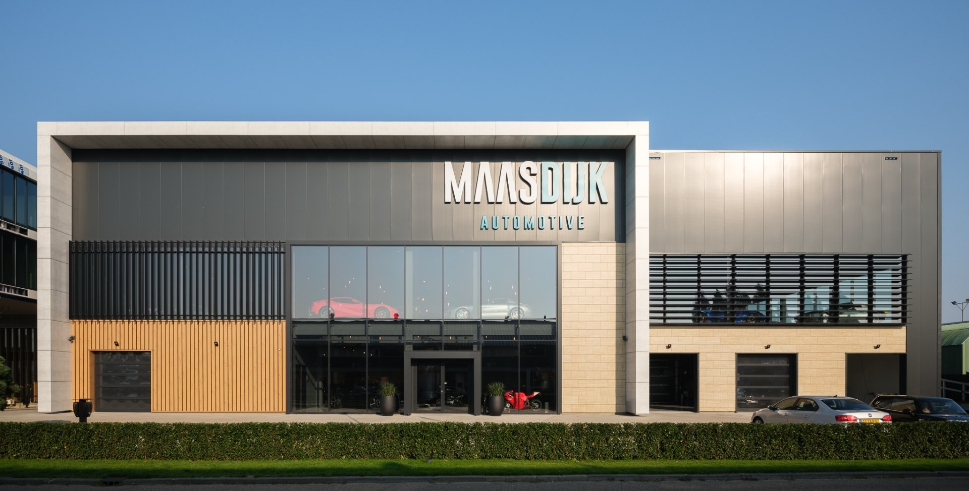 Maasdijk Automotive is een autobedrijf voor en van liefhebbers. Maasdijk Automotive specialiseert zich in exclusieve occasions. Dat betekent goed doorselecteren. Zowel technisch als qua styling worden de auto's in optimale staat gebracht. De nieuwbouw in de automotive sector wordt gerealiseerd aan de Beatrixhaven in Werkendam. Deze eye-catcher wordt voorzien van een grote glazen frontgevel en composieten kaders. Klantbeleving en sfeer staat centraal in het ontwerp.